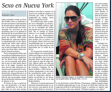 Efectivamente, salvo el tinte político de la referencia a la guerra de Irak -desde luego este señor tuvo poco que ver en la decisión final- sí es cierto que USA es un país en el que no te critican por lanzar una bomba atómica, pero sí por contratar los servicios de una prostituta, aunque a la vista de la fotografía, apetece mucho más lo segundo que lo primero. Pese a un sistema democrático avanzado, sufren anacronismos como este, en el que se juzga a un ciudadano por su relación con esta meretriz y no por su gestión política; desde luego, se trata de un ejercicio de hipocresía absurda en un país democrático y en el que el oficio más viejo del mundo se practica con la más absoluta normalidad (pese a estar prohibida...).
